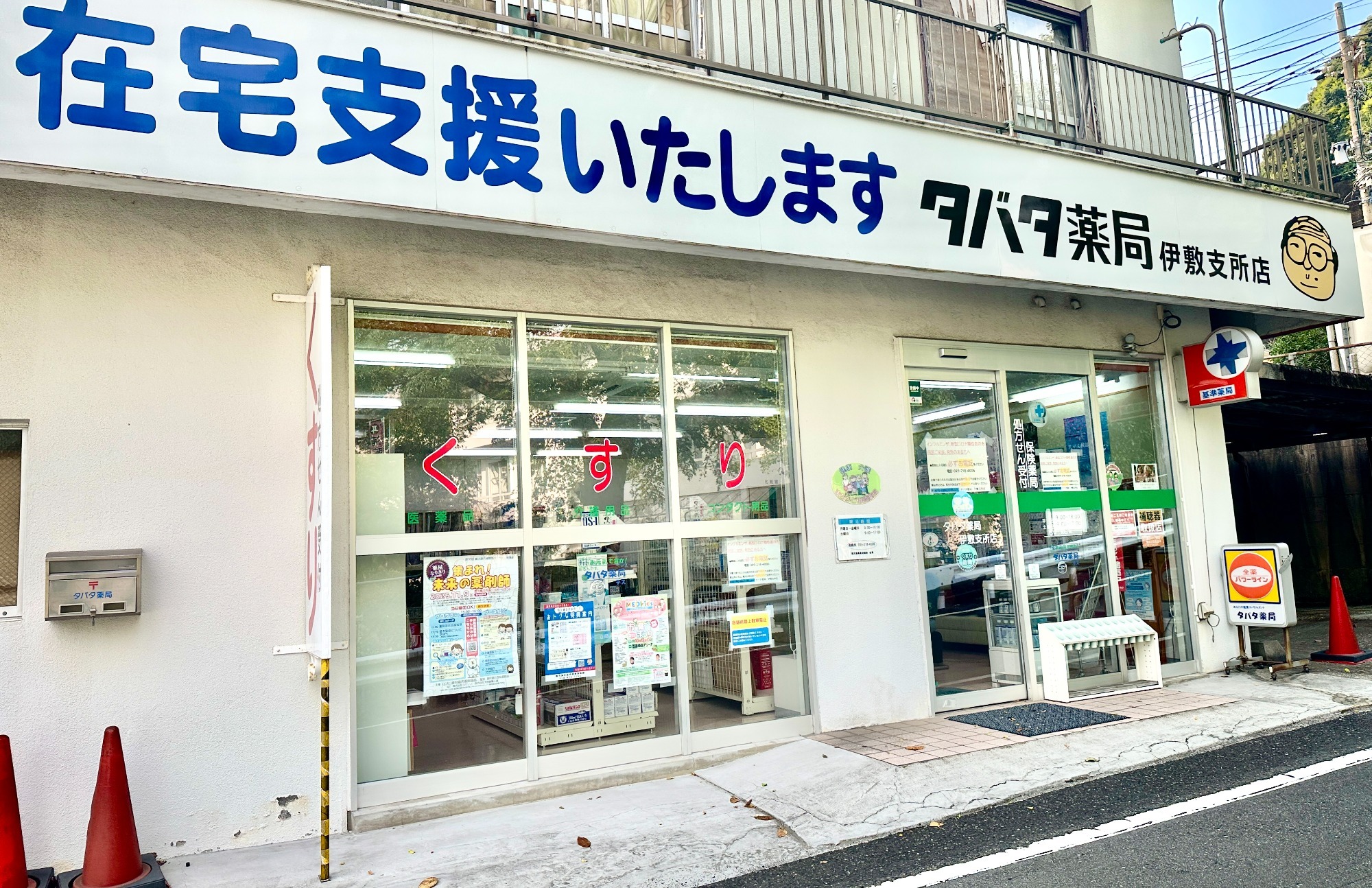 タバタ薬局伊敷支所店は、伊敷の鹿児島市役所伊敷支所近く、伊敷小学校校門前にあります。