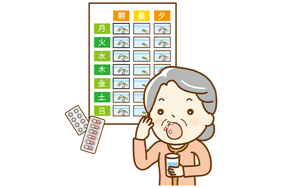 同じ時間に飲むお薬を一つにまとめる、不要なお薬を減らすなど、ご利用者様が間違いなくお薬をお飲み頂けるよう、管理方法を工夫しています。